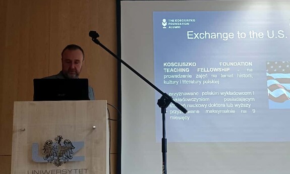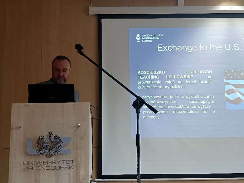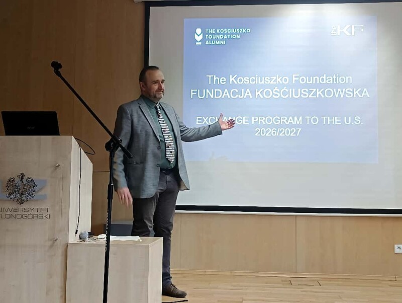 W dniu 21 października 2025 roku w budynku Biblioteki Uniwersytetu Zielonogórskiego odbyło się spotkanie poświęcone prezentacji bieżącej oferty stypendialnej Fundacji Kościuszkowskiej, zorganizowane przez Dział Współpracy z Zagranicą Uniwersytetu Zielonogórskiego. Wydarzenie wpisywało się w obchody stulecia działalności Fundacji, jednej z najstarszych instytucji wspierających współpracę naukową i kulturalną między Polską a Stanami Zjednoczonymi.